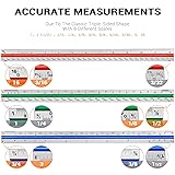 12" Architectural Scale Ruler Aluminum Architect Scale Triangular Scale Ruler for Architects, Draftsman, Students and Engineers, Color-Coded (1 Pack)