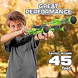 ULTIMATE EXCITEMENT: The Air Storm Wrist Bow is safe and durable, but it can still launch the arrow up to 45 ft making this thrilling for kids as well as adults; gain the most points in an archery using the velcro target, set up your own targets for practice, or go all out in an archery battle WEARABLE BOW: Portable design has adjustable straps for a great fit; Adjustable length for a variety of wrist sizes QUICK RELOAD: Exclusive Loop & Launch Technology provides a quick reload so that every moment is filled with action! Quickly and easily launch arrows; Just hook arrows on the loops, pull back and release PLAY SAFE: Velcro-tipped arrows have soft, foam heads to ensure that safety isn't sacrificed in the pursuit of fun INCLUDES: 1 Red and 1 Green Wrist Bow and 3 Red and 3 Green Velcro Tipped Arrows, plus 1 Portable Fabric Target