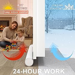 Waterproof Cloth,foam 👼【ONE SIDE DOOR DRAFT BLOCKER】— SYIPO Under Door Draft Stopper is made from top quality styrofoam & abrasion resistant fabric. Total height is 3.5". Jumbo 1.2-inch diameter foam tubes are perfect for blocking extra-large gaps under your door. Fits door up to 37”. We will protect your home against the elements, taking the brunt of rain, snow, dust, and other weather-related factors. 💵【NOISE REDUCTION AND SAVE ENERGY/MONEY】— Our One Sided Adjustable Under Door Draft Blocker is effectively reduce noise, prevent dust from entering through the door, and keep the room quiet & clean. Meanwhile, bottom door draft blockers prevent the leakage of air conditioning or heating, make your room more efficient in cooling or heating. Help you reduce electric cost, save you energy and money. ✅【EASY FAST TO INSTALL】— Install our under door draft stopper,You just have to measure your doors gap, peel the adhesive layer off, stick the velcro in the door side you want,and stick on our door draft stopper. Adjustable door draft stopper has good adhesion and is easy to cut and adjust, and it will move with the door – including carpets, tile, linoleum and hardwoods and securely fits under doors up to 37 inches. You can take it down whenever you want,and it won't hurt your door. 🏡【ANYWHERE TO USE】— One Sided Door Draft Stopper has a so good adhesion that won't making any annoying scratching sound on the floor or window. Practical, tough, economical draft dodger for every family. SYIPO one-sieded, insulated door draft stopper is suitable for indoor and outdoor doors, garages, bathrooms, windows, etc. ✔Note: The shading effect of white is not as good as that of the other three colors. If you want better light blocking, we recommend black draft stopper.