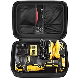 Large Tools Case Storage Organizer: Design for DEWALT 20V MAX XR Oscillating Multi-Tool(DCS356B)/ DEWALT ATOMIC 20V MAX Oscillating Too (DCS354B), Box with accessories for DEWALT sandpaper assortment, DWASPTRI12 hook and loop triangle, sanding pad, blades set, 20V MAX Battery and more for dewalt multitool accessories (For Sale is case only) 100% Protection for Oscillating Power Tools: Hard shell EVA material, water-resistant, shock-resisitanct and practical to protect your multi tool dewalt from impacts and damage, to maximize the life of the for dewalt 20v multitool. Great Construction Box for Dewalt 20v Oscillating Multi-tool Kit: Accurate mould size fits for dewalt 20v oscillating tool, large box can holds 2pcs for dewalt batteries, 1pcs for dewalt multitool adapter, 1pcs for dewalt multitool, Can keep all for dewalt oscillating tool and accessories in safe place, and allows you can easy find the tools you need. Tool Kit Accessories Pocket: The box comes with accessories can store for DEWALT sandpaper assortment, sanding pads, blades set and more small tools comes with for dewalt oscillating multitool. Elestic band design can protect your small tools not easy to fall off and missing. Travel Carrying Case : Comfortable rubber handle, super convenient for traveling. Allows you can take your for DEWALT Oscillating Multi-Tool everywhere without any safety problems.