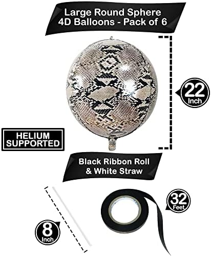 - PACK OF 6 | UNIQUE SNAKE PRINT : These Python Snake Print Balloons are 4D jungle animal balloons of 22 inch and pack of 6 Recreate a jungle themed party for the snake party decorations for kids that will take you on a fantasyland. Create tropical jungle animal decorations with helium supported reptile balloon, wild one safari birthday decorations, snake birthday party supplies for snake birthday decorations, go wild party, wild one baby shower, reptile party decorations.