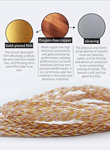 - 【HiFi Transparent Sound Quality】The cable base of high-purity oxygen-free copper has a wide frequency range and can accurately present clear and pure mid-bass rhythm response control. The addition of gold makes the tone more smooth and flexible, and vocals are refreshing. The metallic silver makes the high frequency silky and smooth, the details are full, and the sound transparency is particularly prominent.