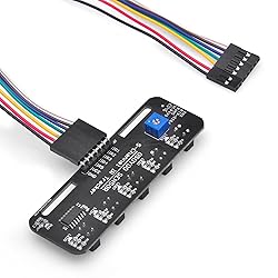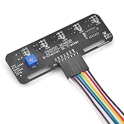 - Specification:Operating Voltage: 3.3-5V(DC)5-channels reflective optical sensors mounted inline (ITR9909 )On-board hex inverter provides a clean digital outputSensitive to dark color and infraredDigital Outputs LOW when objects detectedOn-board indicator LED to show the resultsOnboard potentiometer to adjust the sensitivityOutput Signal: Digital SignalOutput signal: TTL levelDetection Height: 0-3cmComes with M3 flexible mounting slotNote:1. The infrared light emitted by the infrared probe is invisible to the human eye.2. In order to avoid the influence of sunlight on the infrared sensor, we need to use the module indoors.Package included:5 x OSOYOO 5-Line Tracking Sensor 1 x 7 Pin 25cm Female to Female Jumper Wire