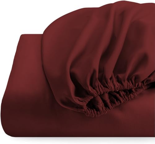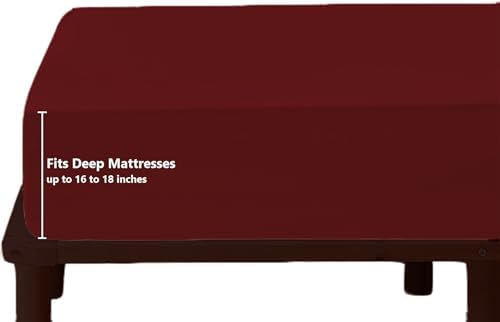 HOME FURNISH Top Split King Fitted Sheet for Adjustable Beds - 600 Thread Count Cotton, Split Down 39 in From Top - Burgundy Solid