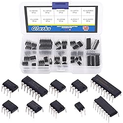 - Glarks 50Pcs 10 Types Integrated Circuit Chip IC Chips Assortment Kit, opamp, Single Precision Timer, pwm, Including LM324 LM358 LM386 LM393 UA741 NE5532 NE555 PC817 ULN2003 ULN2803 Specification: Product Type: IC chips set Material: Alloy Metal and Plastic Fit for IC types: Photocouplers, Timers, Osciallators, Dual Opamps, Quad Opamps, Comperators, Audio Amplifiers, Echo Processors, Current Mode Controllers, Darlington Arrays, Voltage Charge Pump. Package Detail: LM324 x 5pcs LM358 x 5pcs LM386 x 5pcs LM393 x 5pcs UA741 x 5pcs NE5532 x 5pcs NE555 x 5pcs PC817 x 5pcs ULN2003 x 5pcs ULN2803 x 5pcs Total Quantity: 50Pcs Product Feature: ☂ We have selected the most commonly used 10 types of IC chips for you, 50pcs integrated circuits can be used in many projects. ☂ Small electronic components, small size, low power consumption. ☂ It is simple to use and requires fewer peripheral circuits. ☂ These ICs can be used as amplifier, comparator, timer, photocouplers and Darlington arrays.