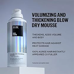 IGK BIG TIME Volume & Thickening Mousse | Moveable + Fullness + Frizz Control | Vegan + Cruelty Free | 6.2 Oz