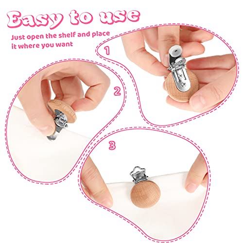 - Material Seguro: los clips para chupetes están hechos de madera y metal, sin BPA ni PVC, material seguro para el uso de tu bebé; Los astillas de madera y los clips se pueden conectar con 2 tornillos, por lo que es más seguro