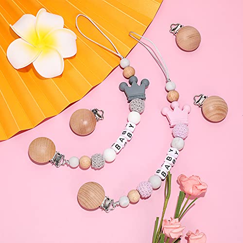 - Paquete Incluye: obtendrás muchas piezas de clips de madera redonda para chupetes de aproximadamente 1.6 x 1.5 pulgadas; Cantidad suficiente para que hagas tu propio soporte, también puedes transformar el sostenedor de chupete en abrazaderas de silicona y collares para bebés que están aprendiendo a morder