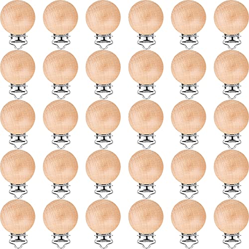 30 Piezas Clips de Madera de Haya Natural para Chupetes Juguetes de Mordedura Clips de Sujeción de Madera Sostenedor de Chupete Adornos Clips DIY (30 Piezas)