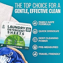 - Sudstainables Laundry Sheets give you the power of liquid detergent in a lightweight strip that dissolves completely in hot or cold water. Each strip is pre-measured—no pouring, no spills, just fresh, soft laundry every time. Fits any laundry routine. Perfect for everyday loads at home, and travel, dorms, RVs, and camping trips. Toss a strip into the washer and let it do the work. Gentle on clothes, tough on dirt. Handles delicate baby items and activewear, safe for sensitive skin. More laundry, less clutter. One compact box replaces bulky jugs and mess, saving you space and offering easier storage. Works with whatever fabric softeners or boosters you already use. For those who want simple, effective laundry. If you’re looking for a cleaner way to wash—without the mess or plastic—these laundry sheets are made for you.