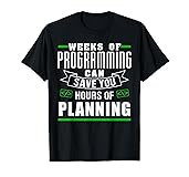 Weeks of programming can save you hours of planning. Programming and coding design perfect for any computer and information scientist. Do you love being a developer and code in python or any other coding language? Then this funny geeky nerd design is perfect for software programming as an admin for the web. Lightweight, Classic fit, Double-needle sleeve and bottom hem