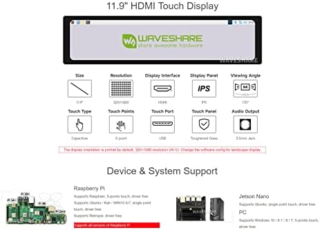 Waveshare 11.9inch Capacitive Touch Screen LCD Compatible with Raspberry Pi 5/4B/3B+/3A+/2B/B+/A+/Zero/Zero W/WH/Zero 2W CM3+/4 320×1480 Resolution HDMI IPS Supports Jetson Nano/Windows