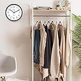 14 inch clock. Large black numbers against white face creates easy viewing in this modern design clock. Easy to read from across the room, office, classroom, or workshop! Silent Sweep Non-ticking Clock Movement - High quality silent quartz movement, keeps accurate time. Being non-ticking, there is no loud ticking, no noise and is perfect for bedroom, living room, computer room, coffee shop, office, conference room. Sturdy plastic frame and glass lens make it easy to clean and keeps dust away from dial Easy To Hang. The perfect wall clock for an office, classroom, bedroom, bathroom and any room in your home Battery Operated – Uses 1 AA battery (not included)