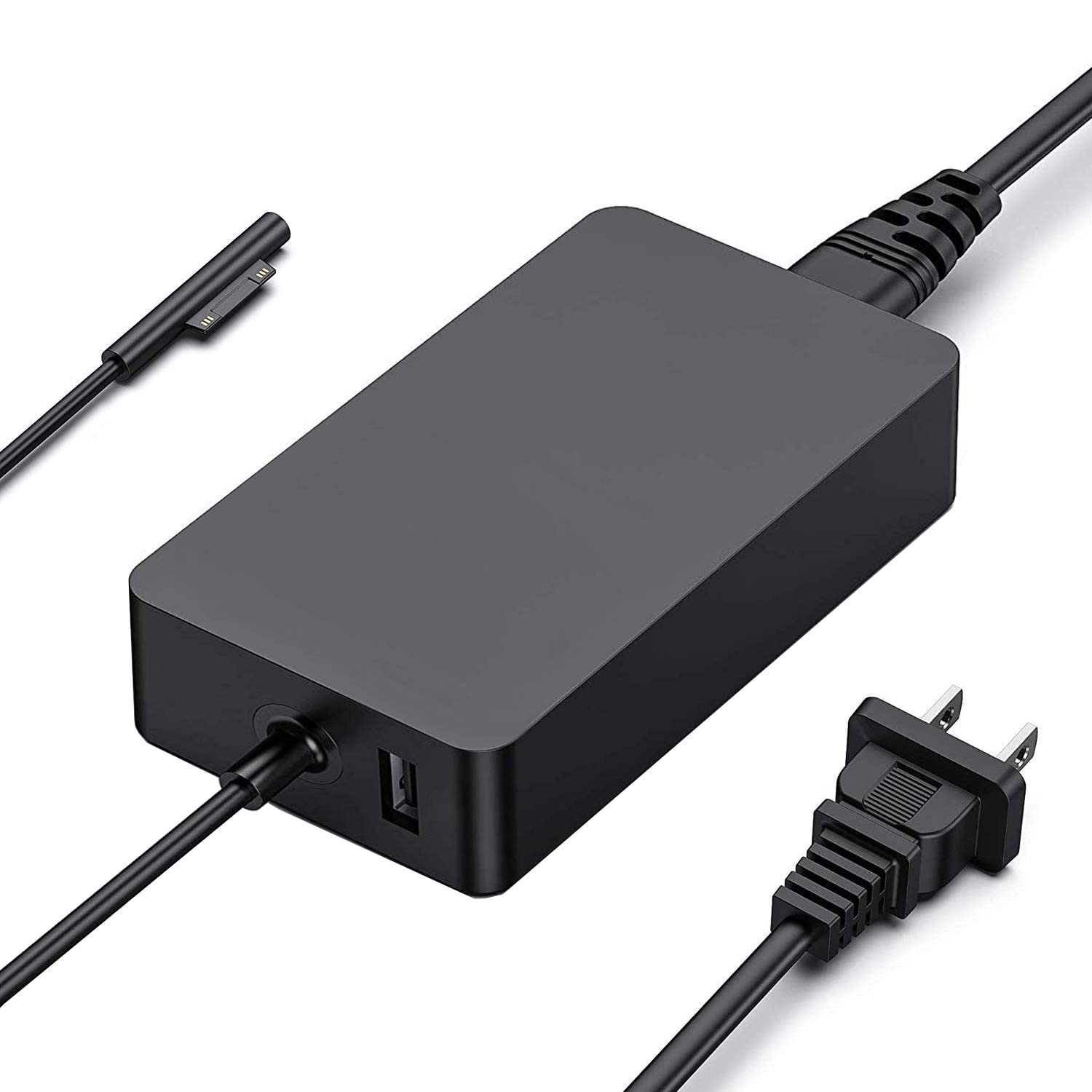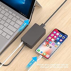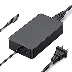 Top-rated 65W Laptop Charger for Microsoft Surface: Full charge Surface Pro 9 in only 1.5h, perfect match surface model 1706, 1866, 1796, 1724, 1625, 1867, 1735, 1800 and so on, higher charging performance than 44W, 39W, 36W, 24W laptop / tablet charger. Widely compatibility: Compatible with Microsoft Surface Pro 9, 8, 7+, 7, 6, 5, 4, 3, X, Windows Surface Laptop 5, 4, 3, 2, 1, Surface Book 3, 2, 1, Surface Go 3, 2, 1, Surface Laptop Go 3, 2, 1, Surface Laptop Studio. Dependable Protection and Safety: Built-in multi safeguards to protect against, overcharging, overheating, short circuiting, friendly to computer battery and provide 2 times longer battery lifespan; official charging video tips without error message popping up. Additional USB Port: With additional USB 2.0 charging port of 5V / 1.5A. You can charge another device such as a phone at the same time. What You Get: 1 x 65W power adapter, 1 x power supply cord; enjoy worry-free 12-month warranty by refund or replacement and friendly customer service.