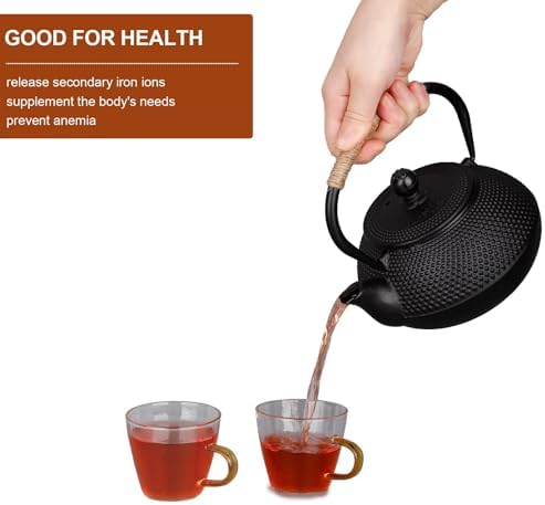 - 【GOOD FOR HEALTH】The cast iron teapot will continuously release secondary iron ions (ferrous ions, Fe2+) during the heating process. It is absorbed by the body when eating and drinking. Iron is a hematopoietic element. Proper drinking can not only supplement the body's needs, but also prevent anemia.