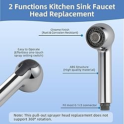 - Enhance your sink with our pull-out spray head featuring two modes: Spray for large cleaning and Stream for gentle washing. Easy installation—just replace your old shower head. Switch modes effortlessly with a single button. Designed for G1/2 connectors (20.5mm or 0.8 inch or 13/16''). Simplify your kitchen or bathroom tasks with this durable, user-friendly upgrade.