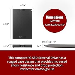 BEST VALUE SSD – Compact and reliable SSD to meet your on-the-go demand. Compatible with PS4/PS5, Macs, and PCs. Save space and loading time on your console by storing your game data on Buffalo SSDs. IDEAL ON-THE-GO ACCESSORY - Quickly copy your large data. If you are a professional in need of fast and secure storage, the Buffalo SSD is ready for on-the-go backup for photos, videos, docs, and more. FAST SPEEDS AND MULTI-TASKING - Faster speed than HDD enables you to connect the device to PC and do large intensive tasks simultaneously. COMPACT, DURABLE, & RELIABLE – Shock-resistant, rugged design provides drop protection. Compact form factor to carry your data in your pocket. No matter if it’s for work or fun, you can easily use your Buffalo SSD on-the-go. USB 3.2 CONNECTIVITY & 3-YEAR WARRANTY – Supports USB-C / USB-A. Easily connect the Buffalo SSD to your PC and other mobile devices. THREE-YEAR WARRANTY for registered devices (two years if unregistered).