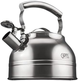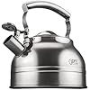 - Efficient: This stainless steel whistling tea kettle is a sleek and efficient addition to any kitchen. The 2.2L capacity is perfect for a family or surprise visitors, and it quickly boils every time. NOTE: HANDLE GETS HOT - USE A POTHOLDER