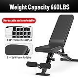 【Adjustable Bench】6 back positions & 3 seat positions to fit your Full Body Workout,you just pull the FAST BOLT,adjust the place which fit yourself and automatic lock! Safety. 【Foldable Bench】You can easy to fold it for storage.A smaller size that fits inside the car,cabinet,cupboards,stand by the wall or under the bed to save storage space and for easy carrying anywhere. 【Heavy Duty Constructure】leikefitness adjustable bench is designed with unique triangle structure and made of heavy-duty steel.660Lbs weight capacity gives you a safe and stable fitness experience. 【Extended Cushion Length】17.7IN Extended seat cushion and 30IN upgraded backrest,made of leather and filled with soft foam padding to 2.16IN NO CRACKING! Allow you do any exercise with a very comfortable feeling. 【Brand Support】Leikefitness weight bench is made of stable and durable steel for total body strength and cardio workouts.We provide an efficient after-sale service. If you have any questions about our products,please feel free to contact us:Login your amazon account > choose "Your orders" > find the order ID > click "Contact seller".