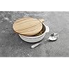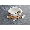 3-piece set. Ceramic pumpkin shaped baking dish comes with engraved wood lid/trivet. Comes with silverplate spoon.