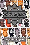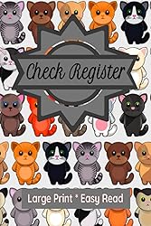 - This cute little kitten Large Print Check Register is perfect for any Cat Lover who also needs to record their banking transactions. The Extra Large Printing makes it incredibly easy to read and has 80 pages which last you quite a long time, even with many transactions to write down.