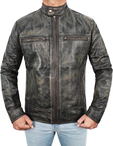 Do you love the appearance of racing bikers of the past, dressed up biker leather jackets? If yes, then here is your chance to look and feel like a racing biker by simply buying and wearing any of these biker leather jackets. All eyes are going to be on you as you zoom away on your bike wearing this motorcycle leather jackets for men. We have the vast variety of vintage leather jackets men in different colors and design. The high level of craftsmanship and excellent stitching make these vintage biker jackets for men look out of this world. It looks like a really expensive cafe racer leather jacket having been made of high quality leather material. Not only will this men motorcycle jacket make you look like a star it will also keep you warm and comfortable during the winter season. This leather biker jacket is robust and very durable. You can also wear these mens distressed leather jackets to enhance your personality while taking part in adventure activities in the outdoors.