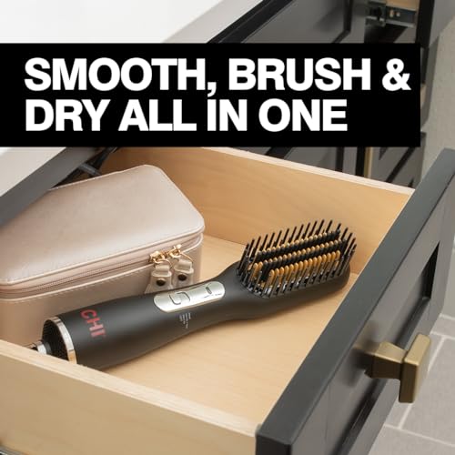 CHI 3-in-1 Hot Smoothing Dryer Brush, Creates A Smooth & Shiny Salon Blowout, Detangles Hair, Seals In Natural Moisture & Fights Frizz, Cruelty-Free
