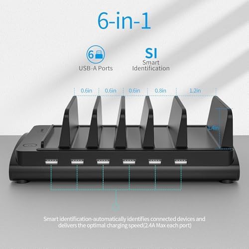 • Neat and Organized-- Bototek Charging station for multiple devices, the 6 port USB charging station can charge up to 6 devices in one place simultaneously. Phone charging station keeps your desktop organized and clean, no cluttered cables, without using up all your USB wall charger outlets.