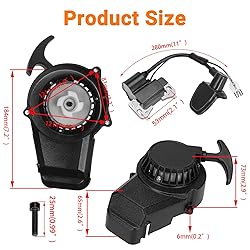 - FVRITO Alloy Easy Pull Recoil Start Starter Spark Plug Ignition Coil for 2 Stroke Engine 47cc 49cc Coolster Chinese ATV Quad 4 Wheeler Go kart Pit Dirt Mini Pocket Chopper Bike Motor Gas Scooter Black Specification: Product Name:Pull Start Condition: Brand New Color:Black Material:Aluminum Size: Mounting Holes: 3 Mounting Hole Distance (Adjacent): 3.15" (80 mm) Mounting Hole Distance (Across): 4.72" (120 mm) for 2 Stroke Engine 47cc 49cc Chinese ATV Quad 4 Wheeler Go kart Pit Dirt Mini Pocket Chopper Bike Motor Gas Scooter for 47cc 49cc SSR,YCF,IMR,Atomik,Thumpstar,BSE,Apollo,Kayo,Stomp,Piranha,DHZ,GPX,Pitster Pro,SDG,Braaap,Taotao,Coolster,Roketa,And Many Other Chinese Brands. Fit Model : Replacement for Coolster 49cc Dirt Bike Xpro 50cc SSR SX50 Mini Dirt Bike MotoTec Cali 40cc Pocket Bike MotoTec Demon X-Treme XP-489 Syx Moto 49cc Scrambler 49cc PIT BIKE Package Contents: 1 x Pull Start 3 x Bolt 1 x Spark Plug 1 x wrench 1 x Ignition Coil 1 x Fuel Filter Note: -We provide clear pictures, measurements where possible. Please check as much as possible to make sure the item is the one that you need. -All dimensions are measured by hand, Please allow 0.5-1 inch difference due to manual measurement.(1inch=2.54cm).