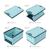 [SPECIFICATION] : 2-piece light blue plastic folding storage box. When opened, the overall dimension of each box is 16.5 "L x 11.4" W x 9.5 "h, the folding height is 2.2 inches, and the maximum carrying volume is 30L. It is suitable for daily family storage or car trunk. [HIGH QUALITY] : The folding box with cover is made of thick and durable, non-toxic and safe plastic materials, which is strong and light, strong bearing capacity, not easy to deform, impact resistant, strong and durable, and can serve you for a long time. [INGENIOUS DESIGN] : Independent buckle design, dust and moisture proof. Embedded handle, easy to handle. When not in use, it can be folded and stacked without wasting space resources. [FEATURES] : The folding storage crates can be stacked no matter when it is opened or folded, slip-resistance bottom design provide more stability when stacking and not easy to slip away. The smooth corner design make it safe and easy to clean. [WIDELY USED] : Classic fashion color matching, an ideal choice for indoor storage or outdoor transportation, provides a space saving solution for your trunk, bedroom, living-room, office, etc, also can be used as fruit and vegetable or medicine storage box.