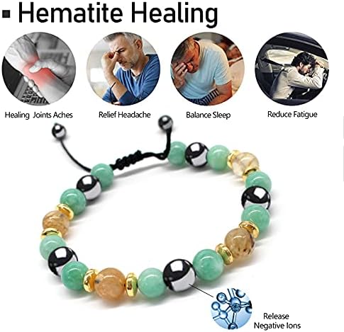- Adjustable Bracelets:This unisex bracelet is handmade with natural gemstones (8mm each) of citrine, hematite and green aventurine .Each stretch bracelet is made with care and one-of-a-kind. Strong stretchy cord for easy wear on and take off. Adjustable cord will fit most wrists. Range: 6.5-9.4 inches.you can adjust your proper size.