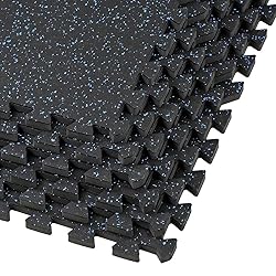 Xspec 1/2" Thick 48 sq ft (12 Tiles) Interlocking Rubber Top EVA Foam Exercise Mat | Home Gym Mats Workout Flooring Tiles for Gyms, Fitness Rooms | Durable Grip Protective Flooring, Black/Blue
