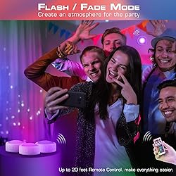 3-Pack Led Closet Light - This wireless colored puck light includes 9 AAA batteries, 3-pack sticky adhesive, and remote control, with 80 lumens and 12 RGB color changes, which is a practical light for your life needs Remote/Touch Control - Turn the puck light ON/OFF with the remote or press the dome button manually. The max remote control distance range is up to 20 feet. Two ways of turning on/off design provide you light when getting up at night or looking for clothes in the closet 30/60 Minutes Timer - This push light can be set to turn off after 30 minutes and 60 minutes, convenient and energy-saving, and it is suitable for installation in a baby’s room, providing your child with a comfortable sleep Multi-Color & Flash /Fade Mode - 4 kinds of preset light colors - white, red, green, blue - and 12 RGB color choices. Press ‘flash’ to make 7 colors flash gradually and press ‘fade’ to make 7 colors dimmable gradually. The remote can control the flash/fade speed in different atmospheres and moods. Ideal for Christmas, birthdays, other festivals, or holidays Easy to Install - With adhesive tapes(included), simple installation, and no tools needed, without scratching the furniture. Suitable for hallway, kitchen, closet, bedroom, cabinet, bookcase, pantry, stair, step, utility room, basement, Halloween, Christmas, birthday party