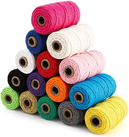 ZEAYEA 15 rollos de cuerda de macramé, cuerda de macramé de algodón natural de 3 mm x 480 yardas, cuerda de hilo de algodón suave trenzado de 4 hebras para obras de arte, colgar en la pared, colgar plantas, manualidades, tejer, 15 colores