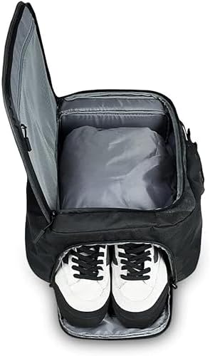 - Collapsible compartment for dirty clothes or shoes and weather-resistant construction