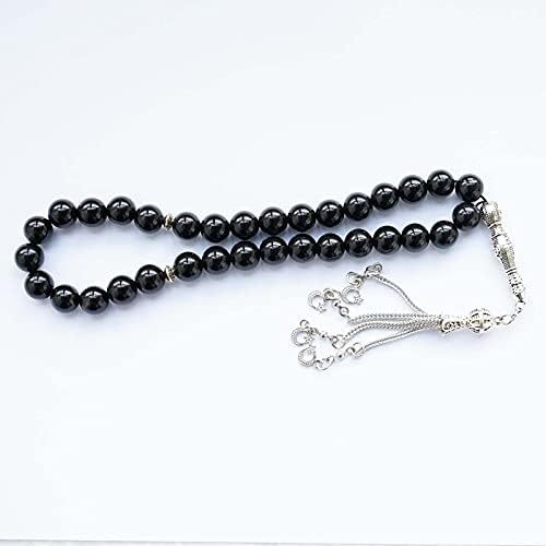 10mm Tasbih Natural Black Agate Stone Islamic Misbaha Bracelet Moon Tasbeeh Sibha 33 Prayer Beads Hand Bracelets