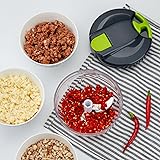 - Excellent design This manual food processors adopted a new design with handle and lid, which will increase the fun of cooking, making the original boring work full of fun, and improving the efficiency for cooking, saving more time for you to accompany your family and friends! Is it complicated to operate? It is easy to use,only takes a few steps to complete the food processing,The Operation details are described as follows: 1. Cut the food into small pieces and put it in the box; 2. Close and tighten the lid towards the left ; 3. Pull the handle several times to chop the food; 4. Then pour the chopped food into the bowl. This vegetable chopper can cut celery, ginger, carrots, tomatoes, onions, garlic, peppers, fruits and meat, etc. Specifications: Material: food-grade PP Plastic Size: Length: 4.92in*3.94in*3.54in / 12.5cm*10cm*9cm Capacity: 500ml The top cover, blade and body of this product can be separated: The top cover,blade and body of this vegetable cutter can be separated, It is easy to clean.It can be rinsed under running water, but it is not suitable for washing in the dishwasher.In order to avoid residual food residue becoming hardened, it is recommended to rinse with water after using directly. It is a unparalleled mini food chopper: This vegetable cutter is unexceptionable. and It is not only exquisite, but also light in weight, suitable for elderly people to using,easy to store, and does not take up much space.It is a great gift for you family and friends.