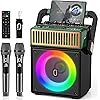 JYX Karaoke Machine with Two Wireless Microphones, Portable Bluetooth Speaker with Bass/Treble Adjustment, PA System with Remote Control, LED Lights,Supports TF Card/USB, AUX IN, FM, REC,TWS for Party