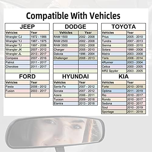 - 【Factory Parts】Rear View Mirror kit Compatible With Dodge 2002-2008 Ram 1500, Ram 2500, Ram 3500, 2005-2010 Charger, 1996- 2004 Dakota, 2008-2013 Challenger, Hyundai 2007-2012 Santa Fe, 2007-2012 Sonata, 2006-2011 Azera, 2009-2018 Tucson, 2013-2018 Elantra.