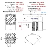 - Package include : 2* Selector Switch 2* Wire Connector Sockets What's the Wire Connector: With the wire connector, you don't need to solder the terminals, make installing very easy Saves the issue of soldering to the switch, and possibly melting it as well You can replace the switch anytime by just unplugging the switch from its socket What's Selector Switch Used for: Scope of application: punch, Automation equipment,Testing instrument and other circuit equipment.used widely to control the electronmagnetic Starter contactor,relay and other automaatic control electric circuits. What's Note: -The project you are going to be used for, don't let current go above 5 amps. Or the switch will get warm and to be burned out What's Customer Support: If you have any questions, feel free to contact us by E-mail any time. We get professional customer service staff and technician to help you Specifications: Head diameter: 18mm Mounting hole size: 0.63"" (16mm) Switch combination: 2 Position,1NO 1NC SPDT ; 3 Position,2NO 2NC DPDT Switch rating: 5A/250VAC Head shape: Round Cap Protection level: IP54