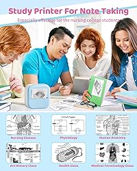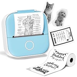 [Enjoy More Interesting Life] -- New style inkless pocket printer is used to print pictures/photos, memo, shopping lists, study/meeting notes and etc. Print Pod mini sticker printer machine,it's a great helper to decorate your journal more memorable, to make photos more stylish, to organize study notes more efficiently, to keep track of happiness moments at anytime etc.Undoubtedly, it must be a special gift for children,students,teachers and DIY craftsman on Children's Day and Thanksgiving day [Easy to Use Mini Sticker Printer] -- Blue compact travel wireless printer-wireless bluetooth connected sticker printer. This pocket mobile printer compatible with Android 5.0 / iOS 9.0, but not support computer devices. Connect to the app in 3 seconds, can use it immediately.Compatible with "Phomemo" APP [Multifunctional APP] -- Abundant templates, graphics, themes, fonts will be updated 10-90 sheets every two weeks. Besides, the size and type of them are adjustable.Importantly, APP is free forever. Only one-key printing, saving your much time, making your work richer and life more funny. Hurry up to enjoy your printing journey.Compatible with "Phomemo" APP [Enhanced Printing Control] -- The printing density of this sticker printer machine can be adjusted according to your preferences via APP. Moreover, this mini sticker printer supports over 10 types of printing papers, and extra 1 paper holder helps to print more neatly. (Warm Notes: The mini thermal printer specializes in monochrome printing, offering exceptional results for black and white documents while it does not support color printing [Save Much Money] -- Our portable printer for iphone, compared to other printers, no need toners or ink. And built-in 1000mAh rechargeable battery, the mini pocket thermal printer is longer lasting use for 1 week. Portable printers wireless for travel - lower cost and compact size, must be a good travel partner