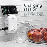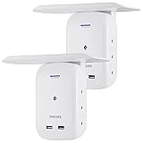 Philips 6-Outlet Extender 2-USB Surge Protector, Side Access Adapter, Wall Tap, Removable Device Shelf, Protected Indicator Light, 450J, 2 Pack, White, SPS6026WA/37