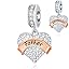 GEMDAZZ Family Theme Charm, 925 Sterling Silver Mother Father Daughter Son Sister Nana Wife Husband Grandma Friend Godmother Goddaughter Clear Pave Heart Pendant Beads, fit European Women Bracelet