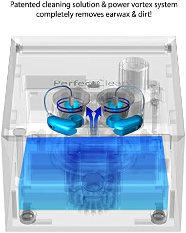 - SIMPLE ONE-TOUCH, DEEP CLEANING. Simply push the button to begin & PerfectClean will take care of the rest. It starts with a 20 min. wash cycle, where it uses its patented spinning Power Vortex system & cleaning solution to dissolve & remove earwax (cerumen), dirt, & other impurities from your hearing devices. It then enters a 40 min. dry cycle, using a pulsed hot air fan to remove sweat & moisture. The built-in UV-C lamp ensures the deepest possible clean. Automatically shuts off when done.