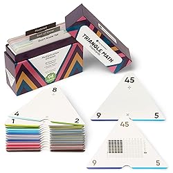 ✅ LEARN MULTIPLICATION & DIVISION: 94 multiplication & division triangular flash cards for third, fourth, fifth, or sixth graders learning all facts 0-12, 376 equations, +3 bonus facts. Each card has 4 equations per card to learn the relationship between multiplication and division. ✅ HELPFUL VISUAL AIDS: Cards have bold, large print with problems on one side and solutions with specially designed graphics on the other. Cards also include color coded multiplicands and divisors for targeted practice. ✅ HIGH QUALITY CARDS: The travel size packs of laminated math flashcards with three corners are made from high quality card stock and come in extra-sturdy carton for storage. ✅ TEACHING & EDUCATION MADE EASY: Includes specially designed tab system to sort mastered versus unmastered cards. Also comes with 6 teaching methods and instructions for how to use the triangle math system. ✅ CREATED IN THE USA: Think Tank Scholar is a US company owned by parents with their kids in California. Local US teachers help us develop and review our Think Tank Scholar products. All products are proudly designed in Los Angeles, CA.