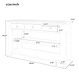 【Classic Vintage Design】- Design with American style, the table top surface is designed distressed with wood grain feeling smooth to the hand, while the drawers are equipped with retro style metal handles for eye-catching. Therefore, its simple and vintage appearance will bring a dose of elegance to your living room, enhancing the whole entryway. 【Strong&Sturdy】Solid pine wood crafted framing and support legs with mixed MDF board makes this console built to last with high level strength and durability. Features four solid legs with diagonal plane, our sofa table can be used for a long time and keep balance. In addition, the table top is covered with a layer of MDF to protect the top from wearing, and its weight capacity can reach 99 lbs. 【Multifunctional Use Console Table】This console table is able to works anywhere in your home. Entry table for hallway, couch table for living room, bedroom, industrial bookcase for home office. You can make it perfect place to set down keys, books, home decorations or even works as a TV stand. 【Large Storage Space】- Our console table can satisfy your different storage needs. The sideboard comes with three big drawers, so you can put your files, glasses and other daily necessities to reduce clutter. Meanwhile, there are two shelves underneath the drawers which can be used to placed books, baskets and plants, while the table top can hold photos, table lamp and more. 【Easy Assembly】Only simply attach the legs and bottom shelf, hardware and tools included. 12 months warranty. Any damage has compensation during transit. Please feel free to contact our customer service if you've got any problems of the item. Overall:29.92'' H x48.82 '' W x15.75 '' D. Shelf:8.66'' H x47.2 '' W x14.96 '' D.