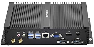 Processor of the Mini Computer: 4 Cores i5 8th Gen. CPU, 6 MB SmartCache, Base Frequency 1.6GHz, Max Turbo Frequency 3.4GHz, 14 nm Lithography, high performance CPU. RAM & Drive of the Mini PC: 16GB DDR4 RAM, 256GB SSD(Solid State Disk). And you can expand the storage with an extra DDR4 RAM and an 2.5 inch SATA SSD/HDD drives inside. Graphics of the Mini Industrial PC: UHD Graphics 620, 4096x2304@24Hz, 4K Ultra High Definition streaming capability and dual Monitor Support via HD&VGA, giving you a best ultimate playback experience. Features of the Mini Industrial Computer: Fanless, silent working, all metal case. What's in box: 1 x Mini PC, 1 x Power Supply, 1 x Power Cable, 1 x HD Cable, 2 x Antennas, 2 x Sata wires, Screws
