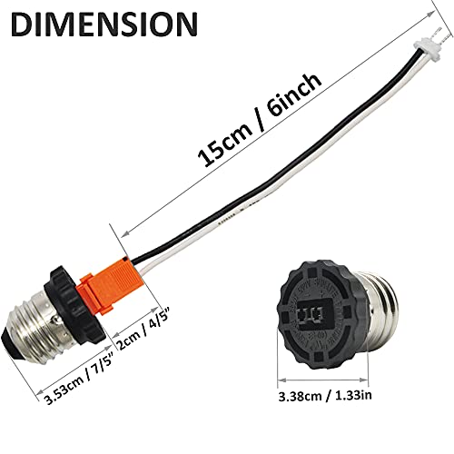 The E26 Socket Adapter modify standard medium screw-in socket to basic electric wire connections. ELECTRICAL RATING: Screw in E26 socket: 660W 600V Orange Connector: 3A 600V 18AWG White/Black Wire:660W 600V UL Recognized Component : Lampholder, File No. E200248Tips: If you connect to another light fixture that has 3 wire connector,ground the fixture with a separate wire. Installation: .Take the bulb out of your recessed light can and replace it with the adapter.The adapter pig tail connects to whatever you are wiring up. .Ideal for an LED retrofit,replacing recessed lights with LED ceiling light fixtures,modifying a recessed light fixture to hang a chandelier,wire in flat panels to old pot lights,medium-base to Par light conversions ect