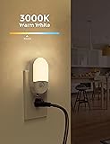 2 BRIGHTNESS LEVELS: The motion sensor night light comes with 2 different levels(30LM/60LM) of brightness control settings. You can slide the brightness slider button on the motion activated night light to adjust it to the level you want. 3 LIGHTING MODES: The plug in night light has a built-in motion sensor and 3 lighting modes. "On" mode - always on; "Off" mode - turns off the light; "Auto" mode - automatically turns on when motion is detected in the dark (Sensing Range: 3-5M, 120°) and turns off after 60 seconds of inactivity. COMFORTABLE LIGHTING: This plug in motion sensor night light provide 3000K soft white lighting and you can move around your house without turning on the main lights at night. Glare-free and not dazzling. ENERGY EFFICIENCY: The strikes the balance of premium performance and low energy consumption. The maximum power consumption of the led plug in motion sensor night light is only 0.6W, which helps save electricity bills and protect the environment. WIDE APPLICATION: This motion detector night light is suitable for kitchen, hallway, bathroom, stairway, corridor, garage, basement, closet, any dark corner, and anywhere you need a tiny lighting or navigate light.