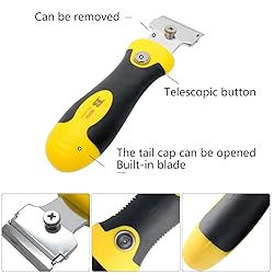 - High Quality Scraper for Windows, Glass. - Supplied with 4 Blades,can be replaced as needed. - Spare Blades can be stored inside scraper handle to ensure they are always at hand. - Mirrors/Glass with comfort grip.The tool holder can be extended by 80mm. - Lightweight scraper for maintenance and removal of dried paint from Removes paint without damaging surface.